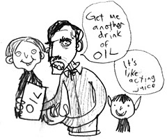 "this is about an oil tycoon named Plainview, his little son, some preacher,
