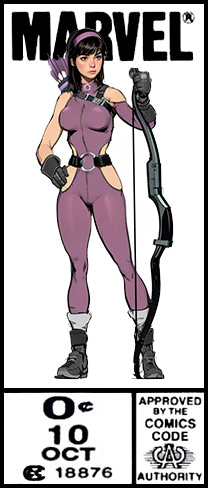 [Matt Fraction, Allan Heinberg, Stan Lee, Mark Millar, David Mack, Brian Bendis, Devin Grayson, David Aja, Jim Cheung, Joe Quesada, John Romita Sr., J. G. Jones, Don Heck, Bryan Hitch, and] Jonathan Igla, 2021 I already talked about Hawkeye’s first few appearances in my article on the Black Widow, with whom he was closely linked for most of the 1960s. The short(‑ish) version: Clint Barton is the world’s greatest archer, but in 1964 that just makes him a carnival act, and not a very popular one. “Big deal! So he hit the target!! What a crummy act!” “C’mon! Get that bum off the stage and bring on the dancin’ girls!” Envious that superheroes get all the glory, Barton decides to become one—“Hawkeye, the Marksman!”—but when he foils a robbery, the cops think that he’s the robber, and Hawkeye, thinking “They’d never believe I’m innocent!”, makes a run for it. (As a kid I thought this was a lame plot device, but nowadays it reads to me like an accurate depiction of American policework and a pretty sensible response on Clint’s part.) By a fluke of happenstance, randomly driving by is the Black Widow, back in the days when her costume consisted of a black beehive hairdo and a fur coat, and she gives him a ride. Instantly smitten, Hawkeye carries out several of the schemes the Widow puts into action at the behest of her “communist masters”, fighting Iron Man several times. Then he breaks into Avengers Mansion and ties up Jarvis the butler… only to announce that he had never intended to become a villain and actually wants to join the team. Avengers being a silly book in this era, the other members instantly agree. Hawkeye’s first role as an Avenger was as the brash young hothead in “Cap’s Kooky Kwartet”, the much lower-powered second generation of the team. With only short breaks here and there, he would stick around for several more generations—nearly twenty years, real time, during which his characterization didn’t change much. Depending on the writer and the situation, in any given issue he would land somewhere on the continuum from “lovable rascal” to “impulsive dumbass”. Then, in 1983, Hawkeye got his first solo book, a four-issue limited series written and drawn by Mark Gruenwald—a bit of a stunt, since Gruenwald was not known as an artist. The two big developments in that series are that Hawkeye loses most of his hearing, deliberately deafening himself so that he won’t be susceptible to the bad guy Crossfire’s sonic weapon, and that he gets married. See, DC Comics had its own archer, Green Arrow, whom Denny O’Neil had paired up with the Black Canary back in 1969. That seemed like a winning combination, Gruenwald thought, so why not pair up Hawkeye with a blonde acrobatic fighter who dressed in black and had an avian nom de guerre? And it just so happened that Marvel had one of those kicking around! Mockingbird has a very interesting history of her own, evolving from Dr. Barbara Morse to S.H.I.E.L.D. Agent 19 to the Huntress before adopting the code name she would stick with—but going into it all would undermine my attempt to make this the short(‑ish) version. Anyway, not long after Hawk and Mock got hitched, the Avengers started up an affiliated team on the west coast, with Hawkeye tapped as the leader—“the character who used to be the immature one has to be the adult in the room” became Hawkeye’s primary theme during this period. Steve Englehart wrote West Coast Avengers for the title’s first few years, and the way he split up the happy couple is kind of ironic in light of the way Hawkeye would be reworked in the years to come. Mockingbird is kidnapped by a character called the Phantom Rider, who drugs and, it is heavily implied, rapes her. When she is freed from his control, she confronts him; in the ensuing fight, he winds up dangling from the edge of a cliff, and instead of pulling him up, Mockingbird lets him fall to his death. For some time she lies to Clint about this, but he eventually finds out what happened, and their marriage is doomed. It’s not just the lies that Hawkeye can’t take: he’s portrayed as a hero from a more innocent time, who insists that Avengers don’t kill. While there were hints at a potential reconciliation, they became academic when Roy Thomas killed off Mockingbird in ’93 and she stayed dead for over fifteen years, real time. Then came a bunch of bullshit with Space Phantoms and pocket universes and stuff that I’ve discussed in past articles but will skip here. By ’98, Hawkeye was back in a familiar role, now leading the Thunderbolts, a group of supervillains trying (with varying degrees of commitment) to reform. He stayed in that role until ’03. The following year, Brian Bendis killed him. Unlike Mockingbird, Hawkeye didn’t stay dead for long. But a lot happened in his absence. For one, the Avengers briefly disbanded. Stepping in to fill the void was a new group, which the title of their series named the Young Avengers. DC Comics had scored a huge hit in the 1980s with the Teen Titans, a group that had originally consisted of a bunch of DC superheroes’ young sidekicks: Robin, of course, but also Kid Flash, Aqualad, Wonder Girl, Green Arrow’s sidekick Speedy, and more. But after the Golden Age, when Captain America went on all his adventures with his “young ally, Bucky” (as I discussed here) and the Human Torch was joined by his young partner Toro, Marvel superheroes didn’t have teenage sidekicks. Thus, the initial quartet of Young Avengers are all new characters who adopt names that sound like they might be the original Avengers’ sidekicks: Patriot, Asgardian, Hulkling, and Iron Lad. But on one of their first missions, trying to stop gunmen from holding up a society wedding, they need to be rescued by one of the bridesmaids. Her name is Kate Bishop. Kate’s backstory was pieced together over the course of many years in many different series, not 